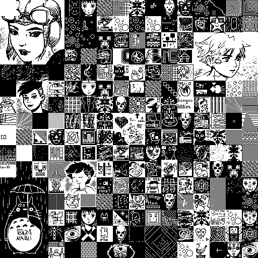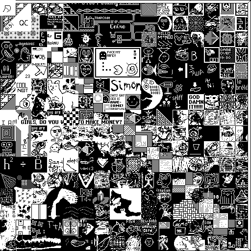 Notes: Most software plays these animated GIF files a bit slowly because they contain thousands of frames. The Linux program xanim plays them well. The whole (time-lapse) retrospective history of the work can be exhibited as a projection. [Help]