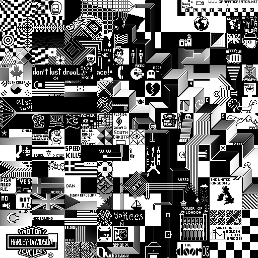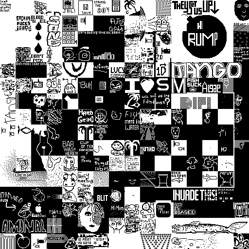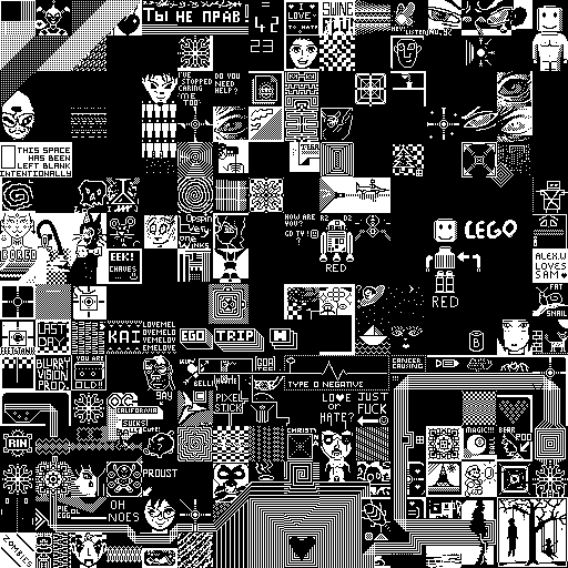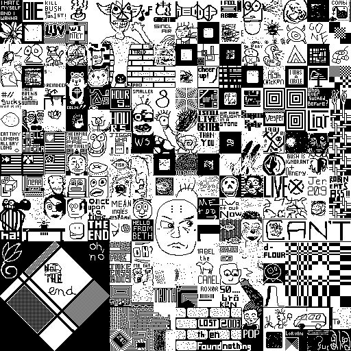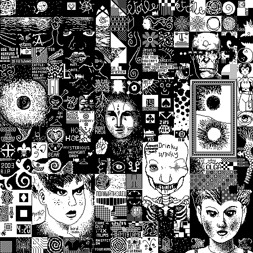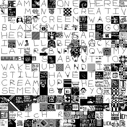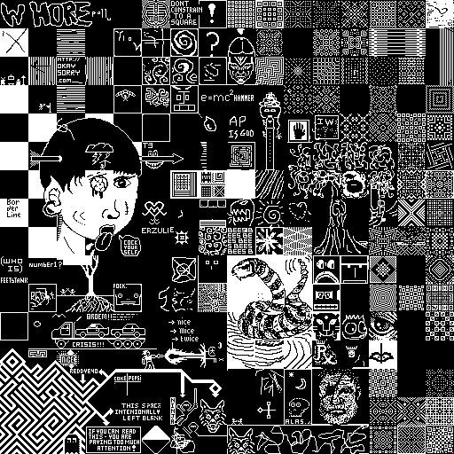 Notes: Most software plays these animated GIF files a bit slowly because they contain thousands of frames. The Linux program xanim plays them well. The whole (time-lapse) retrospective history of the work can be exhibited as a projection. [Help]